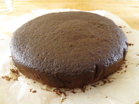 Se toarnă aluatul în formă de copt şi se coace cam 30-35 minute, până când se desprinde uşor de pe marginile tăvii (sau dacă se face testul cu scobitoarea, când aceasta e introdusă în blat, trebuie să iasă curată). Se lasă deoparte la răcit 10 minute, după care se scoate din formă şi se răceşte complet. Blatul este deosebit de pufos şi umed.
