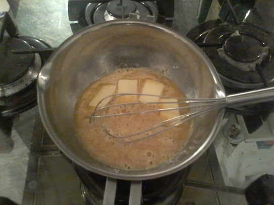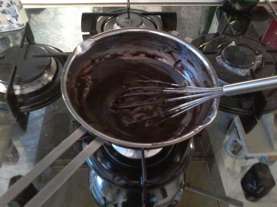 Crăticioara se pune pe foc foarte mic (sau pe baie de aburi), amestecând continuu compoziţia cu un tel, până se îngroaşă. Compoziţia nu trebuie să fiarbă cu bolboci ci doar să fie foarte fierbinte.