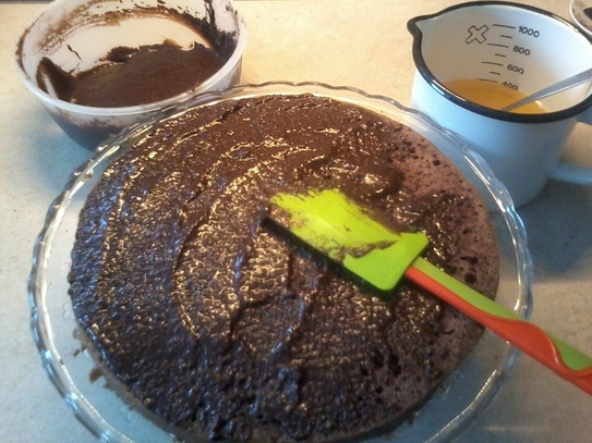 Tortul se îmbracă, pe deasupra şi pe lateral, o jumătate cu crema de ciocolată rămasă, iar cealaltă jumătate cu restul de cremă de portocale. Pentru cei mai îndemânatici, pe partea de deasupra se poate face un model care să amintească de simbolul Yin-Yang.