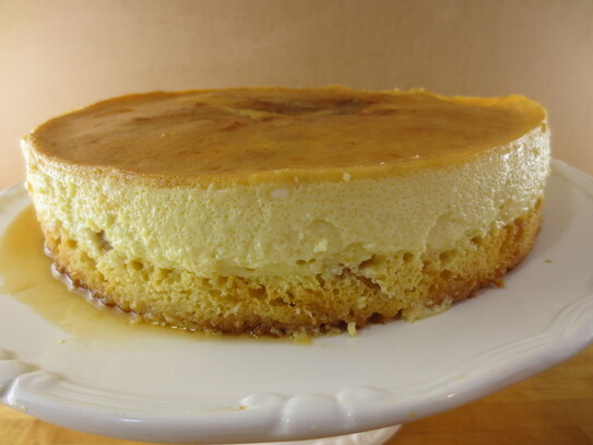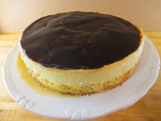 În cuptorul încins la 180 de grade, se pune mai întâi o tavă în care se toarnă un litru de apă fierbinte. Apa are rolul de a menţine textura cremei fine şi untoase, evitând astfel formarea găurilor şi deci a aspectului spongios.