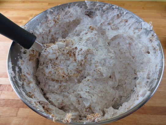 Cu ajutorul unui tel sau mixer, se bat albuşurile până când spumă devine consistentă şi tare. Se adaugă praful de sare şi zahărul "în ploaie" şi se bate în continuare până se obţine o spumă densă şi lucioasă. Se adaugă apoi nucile şi alunele măcinate amestecate cu făină.