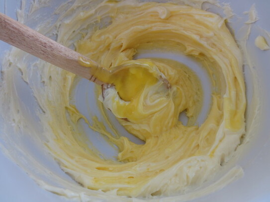 Se amestecă bine gălbenuşurile împreună cu zahărul şi vanilia, după care se transferă pe baie de aburi şi se amestecă continuu până ce crema se îngroaşă dar nu dă în clocot. Se lasă să se răcească. Separat, untul se freacă sau se mixează, până când devine spumos. După ce s-a răcit, crema de ouă şi zeama de lămâie se adaugă treptat în spuma de unt.