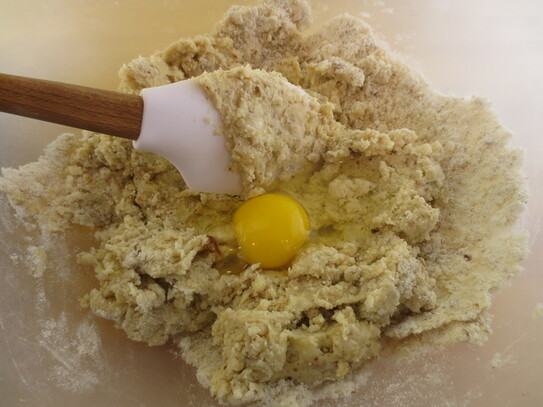 Separat se bate untul cu miere până când devine ca o cremă puţin spumoasă (aproximativ 2-3 minute). Amestecul se toarnă în vasul cu faină, şi apoi se pune pe rând câte un ou, şi se amestecă până când toate ingredientele se combină.