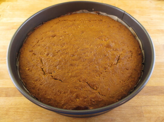 Cuptorul se încălzeşte la 180ºC. Pentru coacerea tortului se foloseşte o tavă de tort circulară, de preferat detaşabilă de mărimea 25X7 cm. Tava se unge cu puţin unt sau ulei, şi se tapetează cu hârtie pergament tăiată în form de cerc cu un diametru mai mare cu 8-10 cm decât fundul tăvii. Pentru a o putea mula uşor în interiorul tăvii, foaia de pergament se crestează din loc în loc cam 4-5 cm.