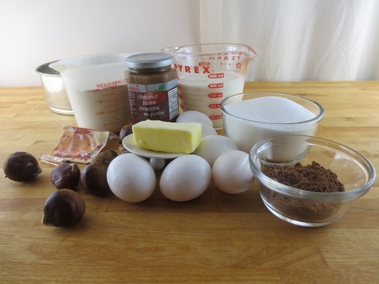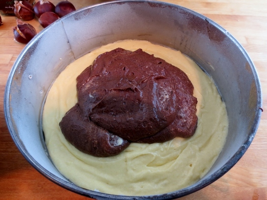 Tăiaţi blatul în trei straturi pe lungime. Însiropaţi stratul de blat de cacao cu sirop de zahăr ars, apoi puneţi jumătate din crema de castane. Peste cremă puneţi al doilea strat de blat, pe care îl însiropaţi cu sirop. Întindeţi restul de cremă, după care se pune a treia parte tăiată din blat.