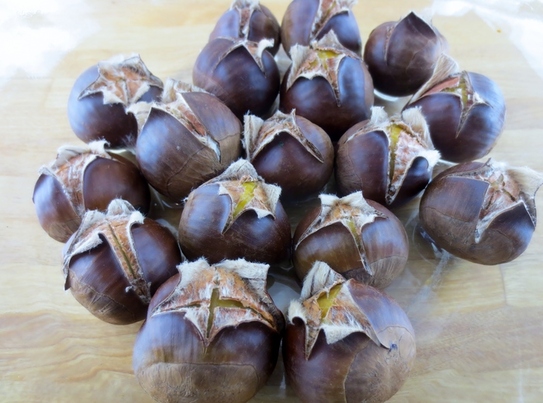 Se începe mai întâi cu prepararea castanelor pentru ornat.