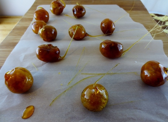 Într-o cratiţă se pune la caramelizat o cană de zahăr, în care s-au adăugat 2 linguri de apă. După ce zahărul s-a topit şi a căpătat culoarea chihlimbarului, se face focul la minim. Se ia pe rând câte o castană curăţată şi se cufundă în zahărul caramelizat. Se scoate apoi şi se ţine atârnata deasupra vasului, până când dâra lăsată de zahărul ars care se scurge se solidifică. Castana se pune la răcit pe o hârtie de pergament. Se continuă aceeaşi operaţie cu restul de castane.
