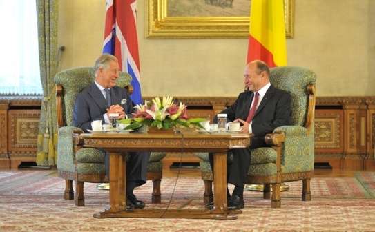 Preşedintele Traian Băsescu l-a primit, luni, la Cotroceni, pe Prinţul Charles, pe care l-a felicitat pentru jubileul mariajului dintre Regina Elisabeta a II-a şi Prinţul Philip.