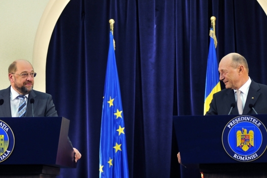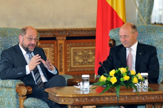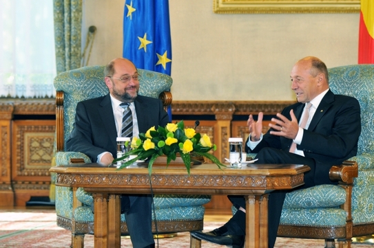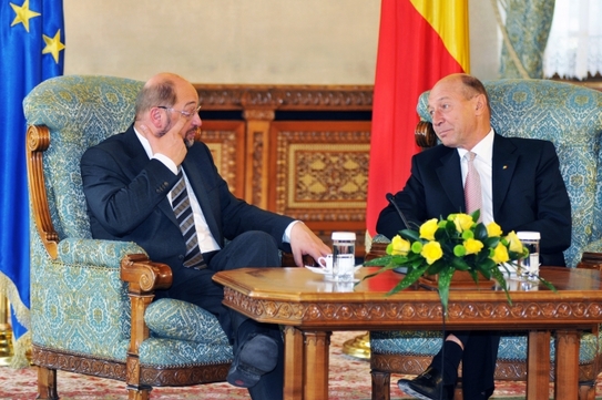 ”Trebuie să vă spun că în ceea ce priveşte România în Europa şi viitorul Uniunii Europene, între mine şi domnul preşedinte Schulz nu există abordări consistent diferite şi asta se manifestă pe toată gama de probleme pe care le-am discutat deja, cadrul financiar multianual, consolidarea Uniunii economice şi monetare, Pactul de creştere şi locuri de muncă, problematica Schengen, problematica MCV, piaţa unică şi aşa mai departe”, a declarat miercuri Traian Băsescu.