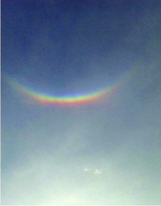 În timp ce se îndrepta spre serviciu, pe la ora 9:00, domnul He din Nanjing a fost surprins să vadă un curcubeu în formă de zâmbet, mai ales că recent nu plouase; el a făcut fotografii.