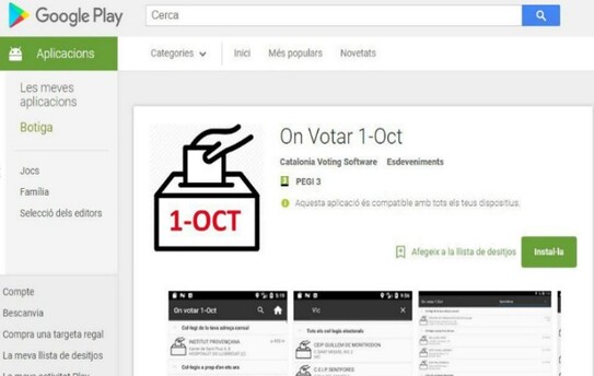 Mai multe informaţii: La Vanguardia: El TSJC ordena a Google retirar la app que informa sobre como y dónde votar el 1-O difundida por Puigdemont