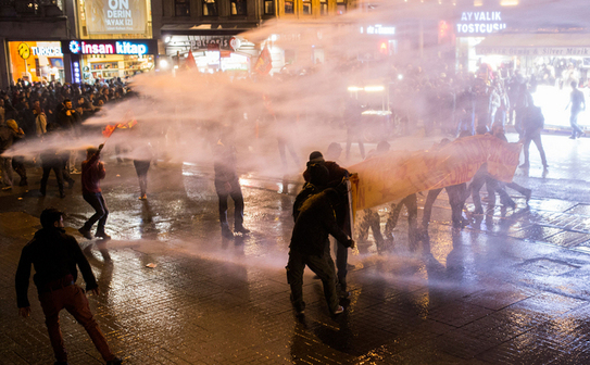 Poliţia a folosit sâmbătă tunuri cu apă, gloanţe de plastic şi gaze lacrimogene pentru a-i dispersa pe manifestanţii strânşi în piaţa Takism din Istanbul.