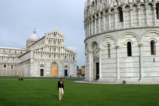 Măreţia Turnului, adiacent Catedralei Santa Maria, iese în evidenţă din complexul de clădiri din piaţă, care par să se odihnească pe un nor verde. Catedrala sau Domul şi Baptisteriul, albe ca zăpada, sunt un exemplu de neegalat de stil romanic-pisan, deşi în cazul cupolei sunt evidente influenţele arabe.