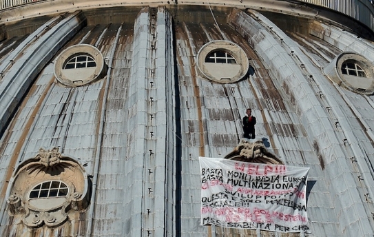 Un bărbat s-a urcat pe cupola Bazilicii Sf. Petru din Vatican pentru a protesta împotriva politicilor economice ale prim-ministrul italian Mario Monti şi a măsurilor de austeritate mandatate de Uniunea Europeană.