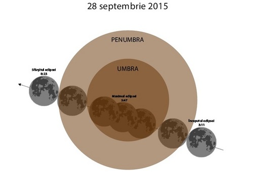 În noaptea de 27 spre 28 septembrie se va produce o eclipsă totală de Lună, vizibilă parţial din toată ţara. „Vizibilă parţial” înseamnă că nu toată eclipsa se va putea vedea de la noi, Luna apunând când încă se află în umbra Pământului, potrivit Observatorului Astronomic "Amiral Vasile Urseanu", din Bucureşti.
