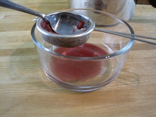 După 30 de minute se ia oala de pe foc, iar sâmburii de rodie se pasează, folosind o sită fină sau o bucată de tifon. Se scurge compoziţia din cratiţă, presând bine pentru a indepărta pulpa de pe seminţe.