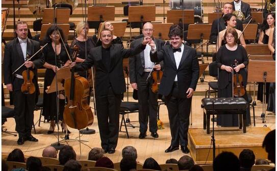 În faţa sălii arhipline, au urcat pe scenă Orchestra Naţională Radio, Corul Academic Radio pregătit de Ciprian Ţuţu şi Corul de copii Radio condus de Voicu Popescu, alături de solişti: soprana Olga Pudova, tenorul Sunnyboy Dladla şi baritonul Şerban Vasile.