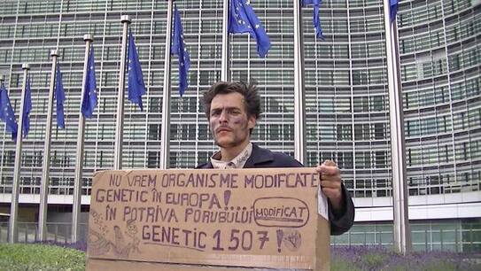 Un român protestează la Bruxelles, 24/24