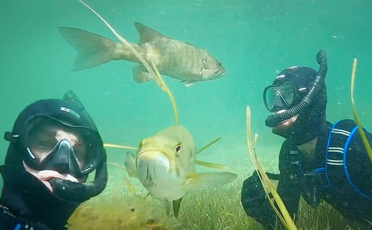 Rex Colubra, în vârstă de 40 de ani, s-a împrietenit în septembrie 2021 cu bibanul de apă dulce cu gura mică, în timp ce efectua o scufundare.