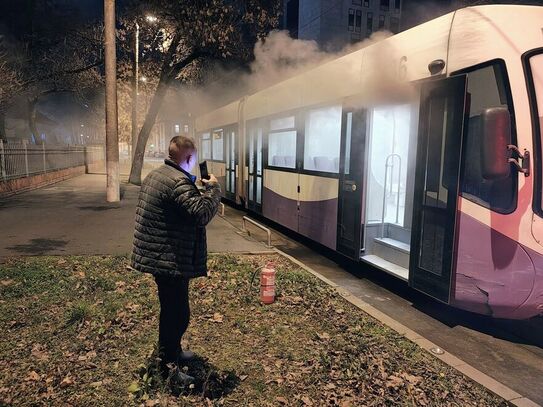 Un tramvai a luat foc în mers, la Timişoara. Incendiul, stins de un fost revoluţionar
