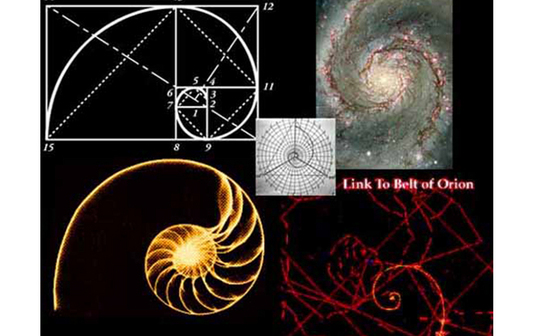 Litera grecească ϕ phi simbolizează Secţiunea Divină, acest ϕ este mai uşor de vizualizat în formă geometrică şi e reprezentat de un dreptunghi format din alipirea unui pătrat şi a unui dreptunghi a cărui proporţie este de 1 la 1,618 faţă de pătratul respectiv. Această operaţiune poate fi repetată în ambele sensuri la infinit. Dacă trasăm un sfert de cerc în fiecare pătrat pe măsură ce latura acestuia creşte, obţinem Spirala de Aur (sau Spirala Divină). Pentru un student la arte această informaţie nu reprezintă ceva nou, deoarece se predă încă de pe vremea lui Leonardo Da Vinci ca etalon pentru realizarea unor compoziţii echilibrate şi armonioase. Mai puţin cunoscut este faptul că Spirala de Aur este cel mai simplu tipar matematic natural. În acest tipar se înscriu cochiliile melcilor, scoicile, coarnele animalelor, florile, plantele etc. Oamenii folosesc cifrele doar pentru organizarea informaţiei.