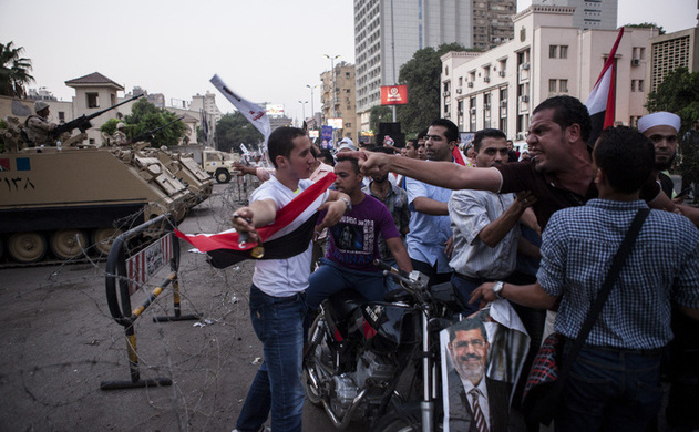 Marţi, o persoană a fost ucisă şi o duzină au fost răniţi în ciocnirile care au existat între pro şi anti-Morsi. Islamiştii au reiterat cererea de a restabili cât mai curând posibil statul de drept şi a pune la loc pe Mohamed Morsi, asigurând că până atunci garnizoanele nu vor fi demobilizate, chiar cu riscul unei băi de sânge. Morsi fost destituit şi arestat de armată la 3 iulie, în urma unei lovituri de stat. Mişcarea Frăţia Musulmană i-a îndemnat pe egiptenii loiali fostului preşedinte islamist să iasă în stradă.