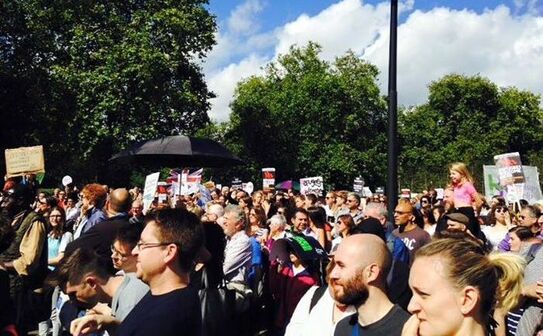 Marşul a fost anunţat printr-un eveniment pe Facebook intitulat "Solidarity with Refugees" (Solidaritatea cu refugiaţii), iar printre organizatori se numără Refugee Council, Amnesty Internaţional, Syria Solidarity Movement, Stand Up to Racism şi Stop the War Coalition.