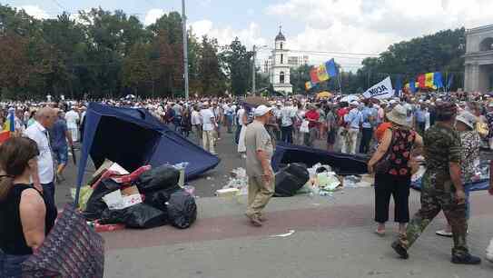 După ce au scandat în faţa Parlamentului, SIS şi CNA ”Jos mafia!”, ”Hoţii!”, ”Ruşine să vă fie!”, ”Nu păziţi bandiţii!”, ”Plahotniuc nu uita, puşcăria-i casa ta!”, protestatarii s-au întors în PMAN si au continuat protestul până seara. Mai mulţi oameni şi-au instalat corturi în PMAN, alţii şi-au adus pături menţionând că vor să protesteze şi noaptea după care să continue demonstraţia şi luni, de Ziua Independenţei R. Moldova.