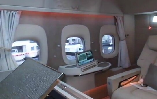 În clipul video realizat de Zach Honig, lansat în blogul de călătorie "The Points Guy", puteţi vedea efectul "ferestrelor virtuale" deja prezente în prima clasă la bordul aeronavelor Boeing 777 de la Emirates.