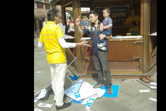 Un incident straniu s-a petrecut duminică după-amiază, la Veneţia, când un grup de chinezi a atacat practicanţi Falun Gong1 în timpul activităţii de informare a publicului larg.
