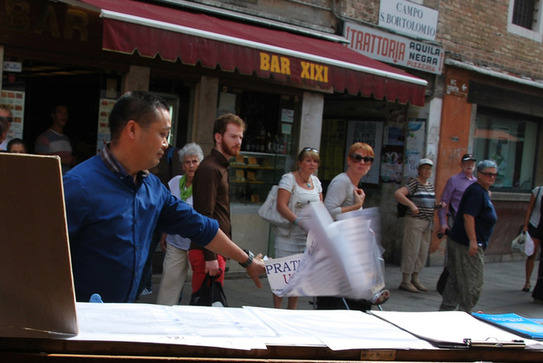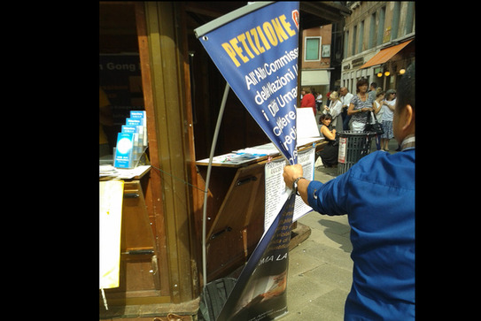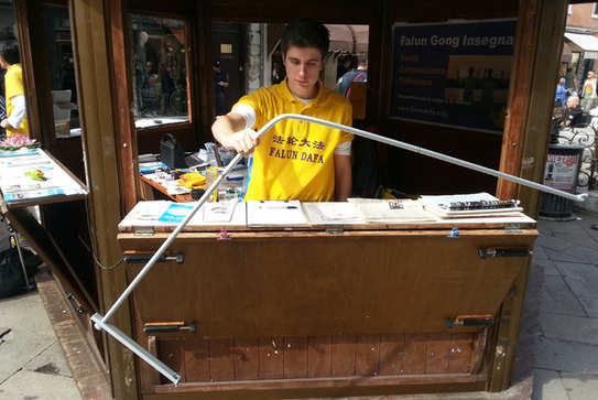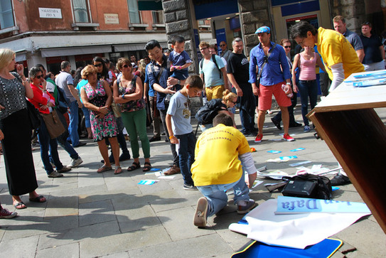 Cu aprobarea Primăriei, practicanţii Falun Gong, informau trecătorii din Campo di San Bartolomeo despre încălcările drepturilor omului ale căror victime sunt, de peste 15 ani, aderenţii Falun Gong din China.