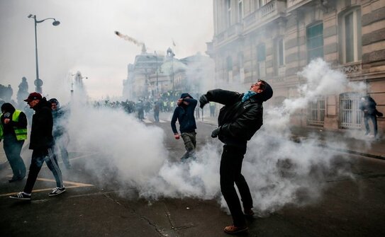 O serie de proteste anti-guvernamentale au avut loc în Paris şi în alte oraşe ale Franţei, focusate pe măsurile politice ale lui Macron, care sunt considerate că îi favorizează pe cei bogaţi. Autorităţile au mobilizat aproximativ 80.000 de poliţişti pentru a patrula în zona evenimentelor şi pentru a calma tensiunile.