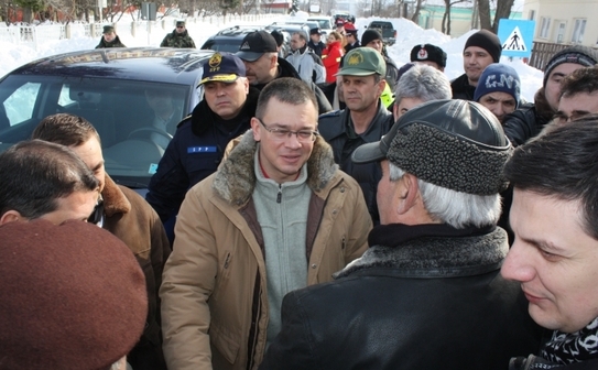 Înainte de a ajunge în comuna Dumitreşti, premierul s-a oprit în satul Cândeşti, comuna Dumbrăveni unde mai mulţi jandarmi degajau de zăpadă o uliţă. Premierul s-a arătat indignat de faptul că niciun sătean nu îi ajută pe angajaţii Jandarmeriei. Totodată, Ungureanu l-a întrebat şi pe preşedintele CJ Vrancea, Marian Oprişan când o să îi vadă şi pe primarii din judeţ coordonând acţiunile de deszăpezire.