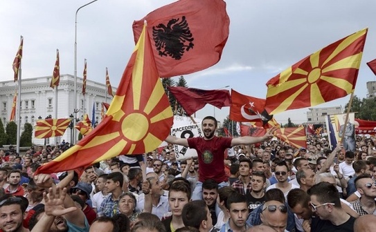În cadrul unui protest, organizat de social democraţii lui Zoran Zaev şi câteva organizaţii publice, manifestanţii au fluturat steaguri macedonene şi albaneze în timp ce s-au strâns în faţa clădirii guvernului din Skopje pentru a cere demisia lui Gruevski dar şi a ministrului de externe Nikola Poposki.
