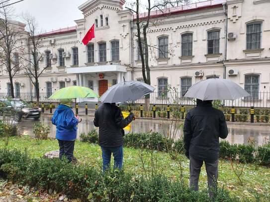 Cu ocazia Zilei Internaţionale a Drepturilor Omului, celebrată anual la 10 decembrie, membri şi susţinători ai Asociaţiei Falun Dafa au protestat, joi, în faţa Ambasadei chineze de la Chişinău şi în faţa Ministerului Justiţiei, cerând să înceteze imediat încălcarea drepturilor discipolilor Falun Gong din China şi din Republica Moldova.