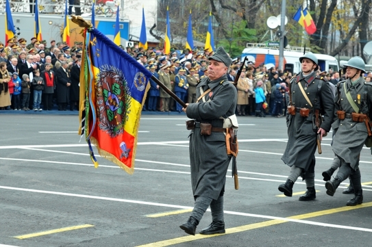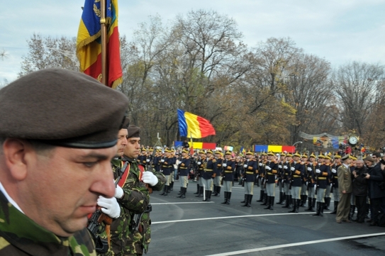 Parada militară de la Arcul de Triumf a debutat cu defilarea detaşamentului Batalionului 2 Infanterie ”Călugăreni” din Brigada 1 Mecanizată 'ARGEDAVA', urmat de detaşamentul Batalionului 495 Infanterie ”Căpitan Ştefan Şoverth” din Brigada 1 Mecanizată ”ARGEDAVA”. Ceremonia militară a continuat apoi cu momentul militarilor români participanţi la misiuni în teatrele de operaţii din Irak, Balcanii de Vest şi Afganistan.