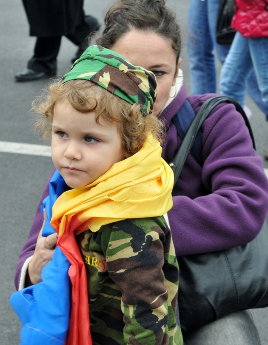 ”Defilarea a fost foarte frumoasă, chiar dacă a fost foarte multă lume şi nu am văzut mai nimic. Atmosfera este ceea ce contează. Că suntem români şi suntem toţi la un loc. Aşa ar fi normal!”