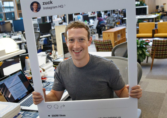 Pentru a sărbători pragul atingerii de 500 de milioane de utilizatori pe Instagram, Zuckerberg a publicat o poză pe Facebook, care îl înfăţişează îmbrăcat cu veşnicul său tricou gri şi cu un zâmbet zdrobitor, în faţa biroului său.